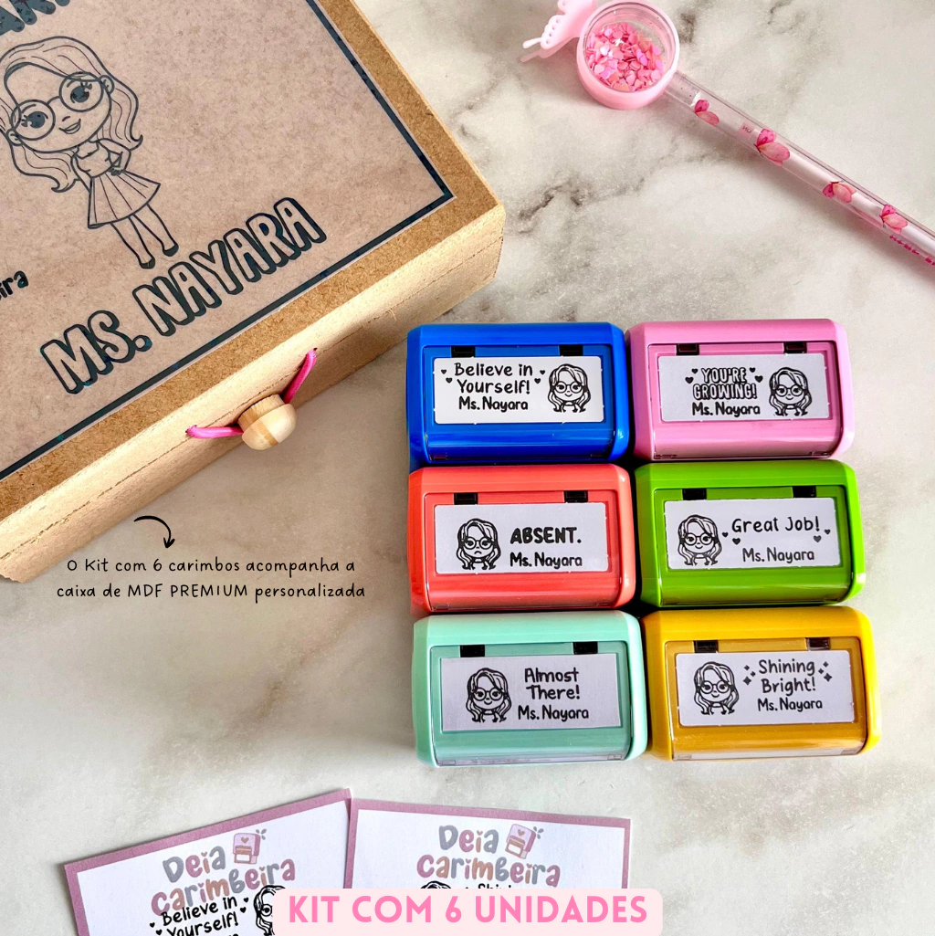 - Na compra do kit, você recebe uma caixinha linda e exclusiva em MDF personalizada para guardar seus carimbos.